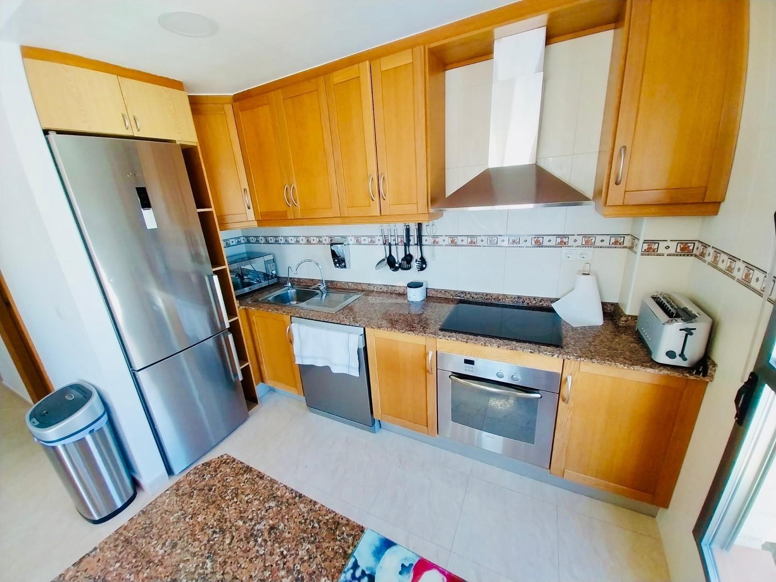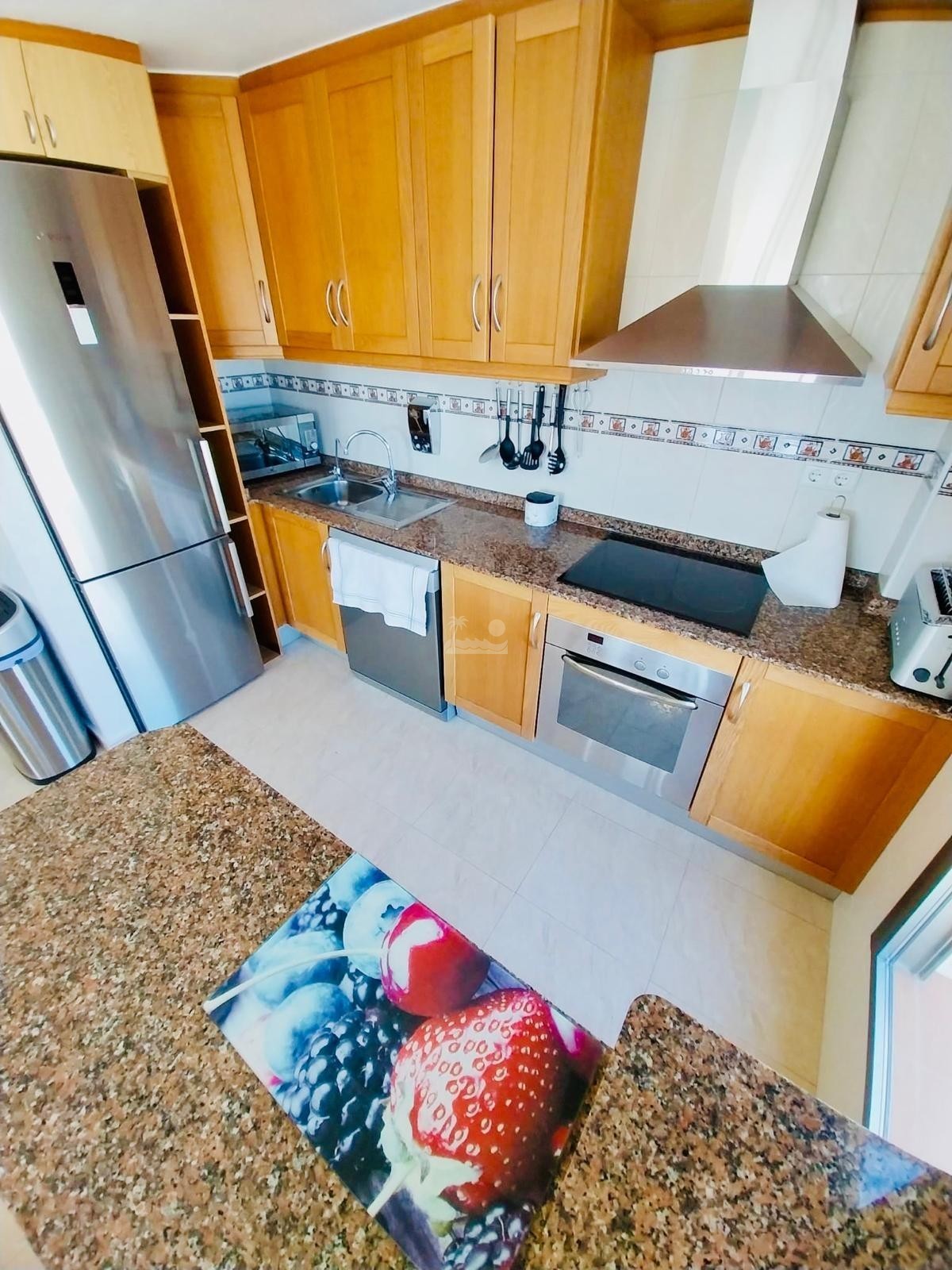 Su cocina es americana. Y su salón muy amplio, con una excelente terraza con orientación sur-este que garantiza sol todos los días del año, además de unas privilegiadas vistas despejadas hacia el mediterráneo.