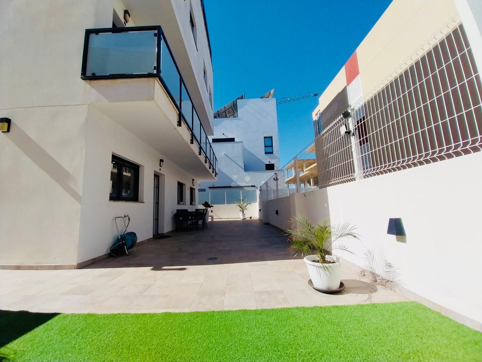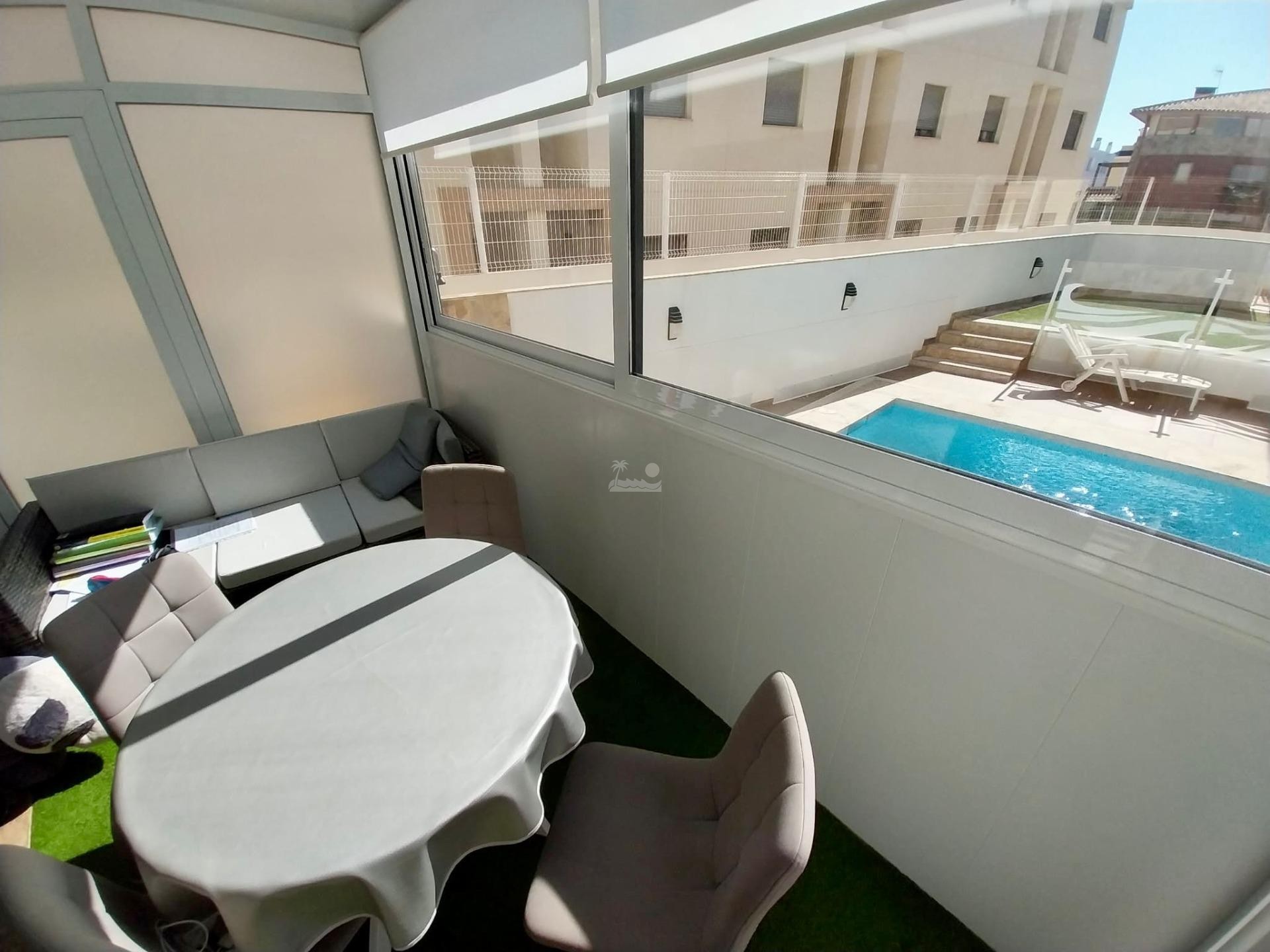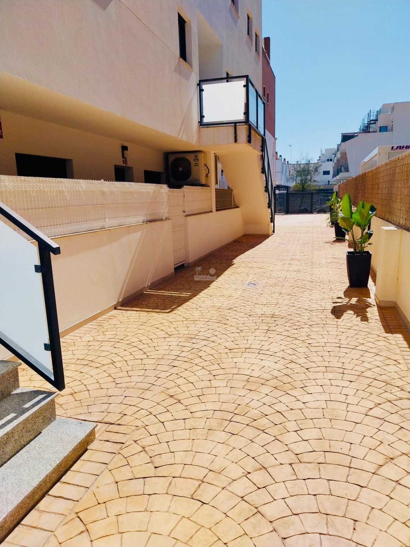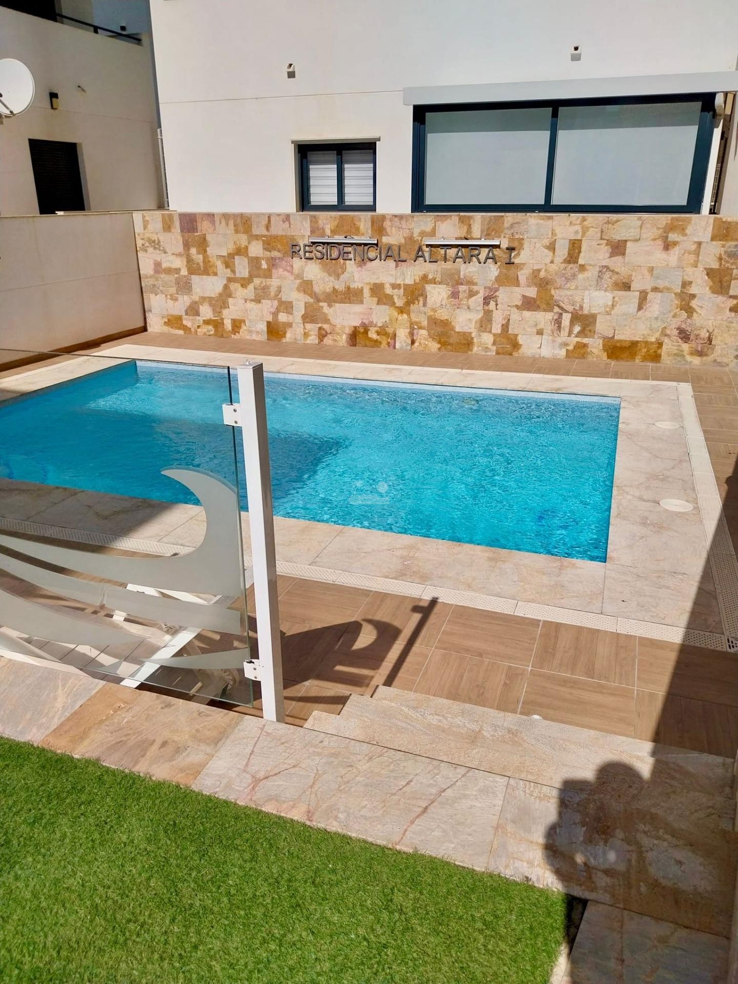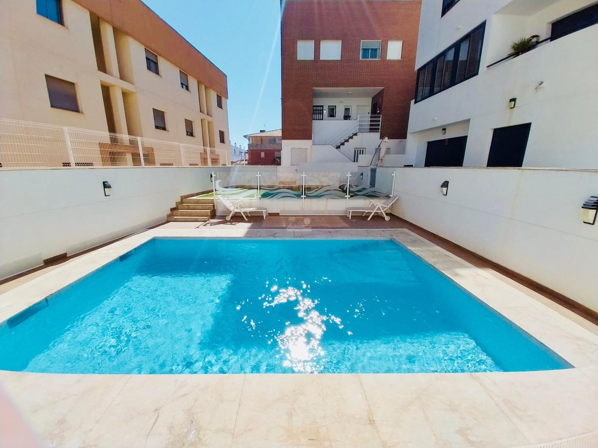 El residencial en moderno y cuenta con piscina comunitaria y zonas de relax.